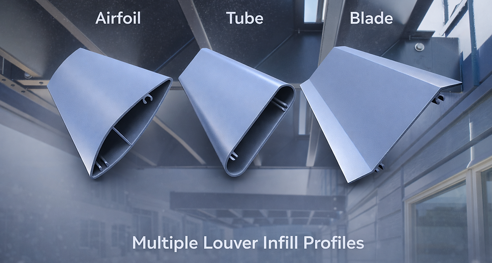Multiple louver infill profiles, including Airfoil, Blade and Tube, to achieve the desired balance of shade and visibility.